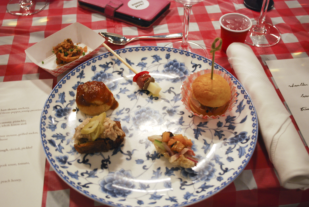 An afternoon event filled with a lavish 30-course tasting menu taken standing up, it was a friendly competition of five of the city’s top chefs cooking one whole, heritage breed pig from a local family farm, all paired with amazing wines and spirits. This chefs are: Kosta Kontogiannis (the event’s winner) of Kingbird at The Watergate HotelBen Pflaumer of Osteria MoriniJon Sybert of Tail Up GoatZachary Mills of Wit & Wisdom Tavern, and BJ Lieberman of Rose’s Luxury. In addition, there were two satellite competitions, the Somm Smackdown (wine/pig matching) and Punch Kings (barkeeps facing off in whole-bottle punch tilt). There were boutique wines like, Smoked Old-Fashioneds, a Tiki Bar and Heritage Rum Cart, and the Glenfiddich Experience.
